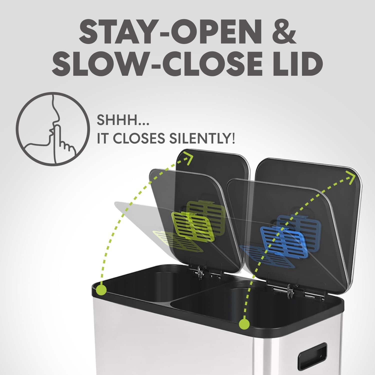 • Hands-Free Step Pedal Operation - A durable stainless steel foot pedal allows hygienic, hands-free disposal for both waste and recycling. Built for daily kitchen use, it keeps hands clean while offering smooth, reliable performance over time.