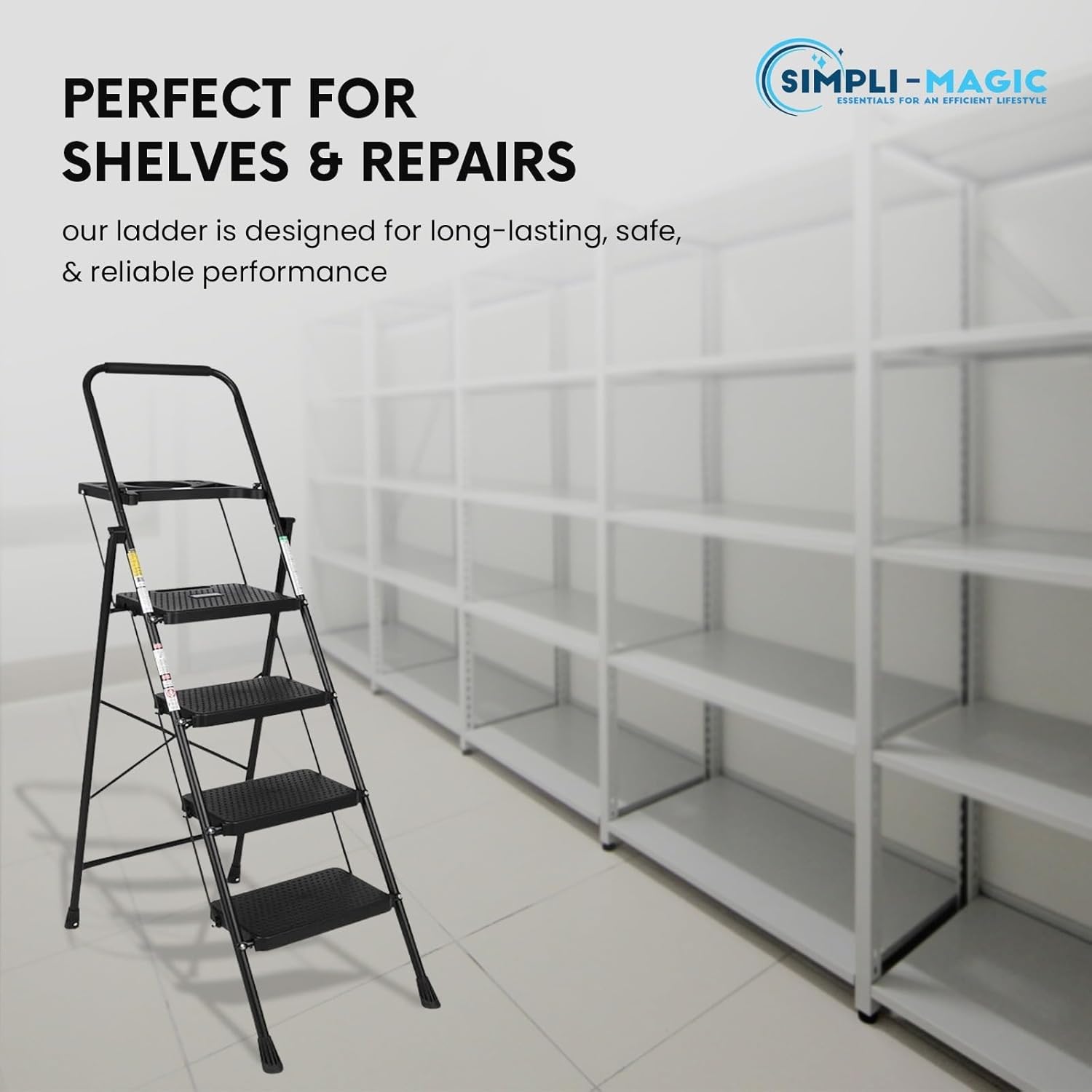 SIMPLI-MAGIC 4-Step Ladder, 800 LBS Capacity Folding Step Stool – Anti-Slip Wide Steps & Handgrip – ANSI Certified Lightweight & Durable Steel Stepping Stool for Kitchen, Home, Office & Garage