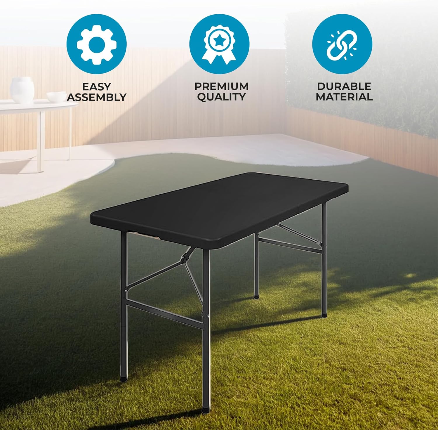 SIMPLI-MAGIC 4ft Portable Plastic Folding Table – 17% Thicker than Others – Indoor & Outdoor Heavy-Duty Foldable Utility Table w/Handle for Party & Camping (Black)