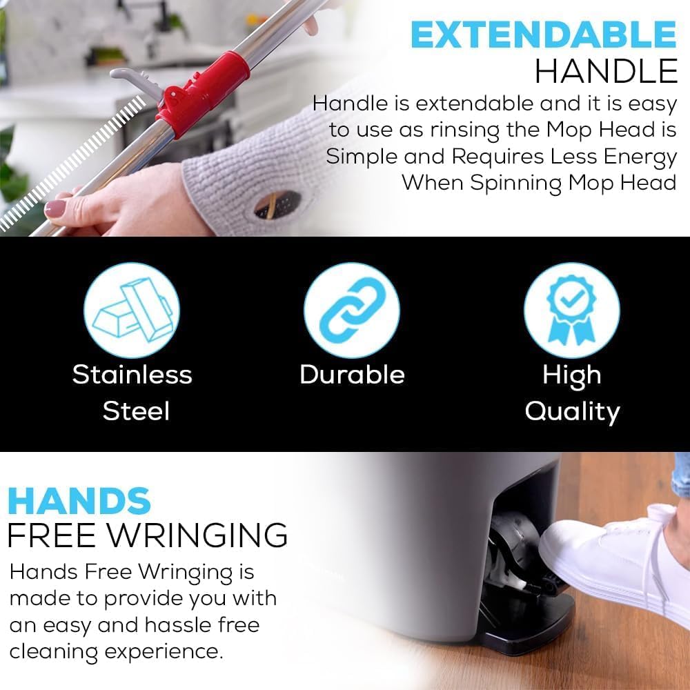 • High Absorbency Microfiber: The mop heads are made from high-quality microfiber that absorbs dirt, dust, and spills more efficiently than traditional mop heads, leaving floors spotless and streak-free.
