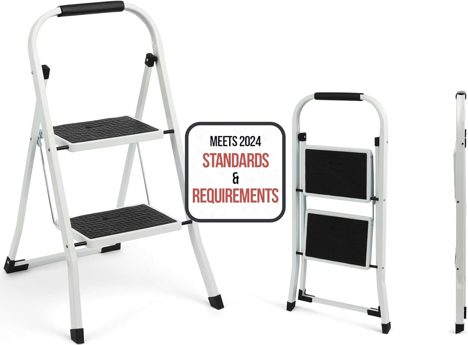 Simpli-Magic Step Ladder, 2 Step Stool Ergonomic Foldable with Wide Anti-Slip Pedal, Multi-Use for Household, Kitchen and Office (350 LBS Capacity)